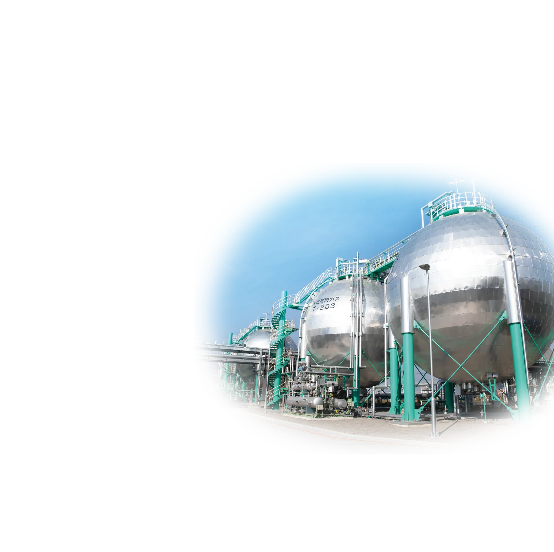 当社は、石油精製や石油化学プラントなどで発生するCO2を回収し、精製・加工して液化炭酸ガス/ドライアイスを製造しています。